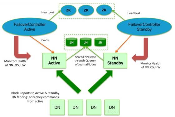 DN在运行过程中维护此序列号,当failover时,新的NN在返回DN心跳时会返回自己的active状态和一个更大的序列号。DN接收到这个返回则认为该NN为新的active;