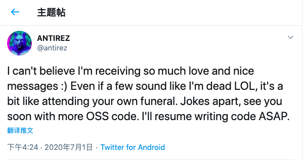 Sanfilippo 的公告受到了业界的强烈关注,以至于他在 Twitter 上感慨说:“简直不敢相信我收到了如此多的消息:) 即使有些听起来像是我死掉了一样(大笑),这有点像参加自己的葬礼呢...”