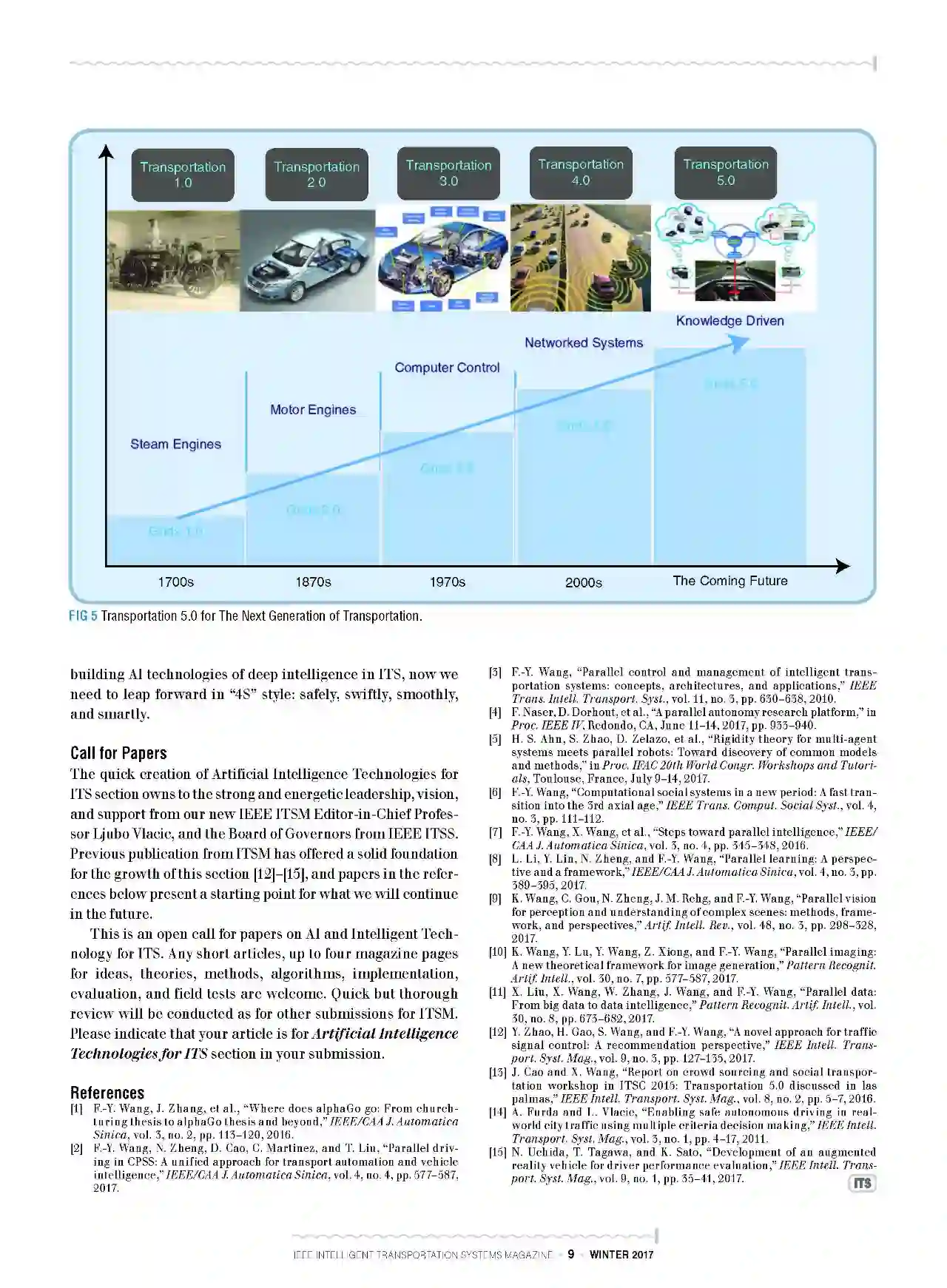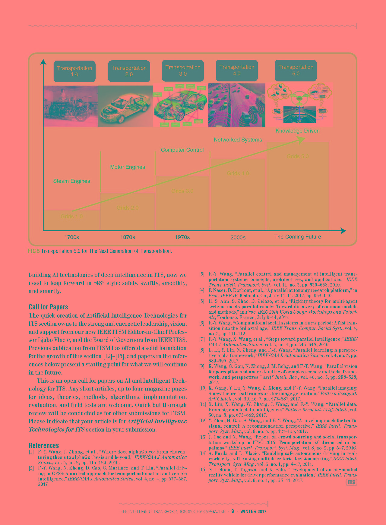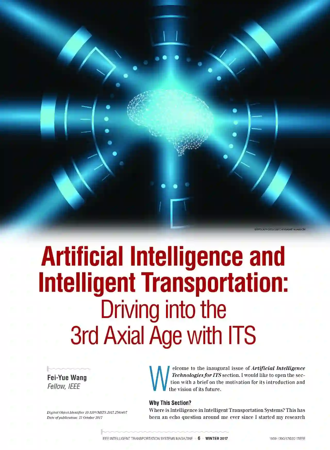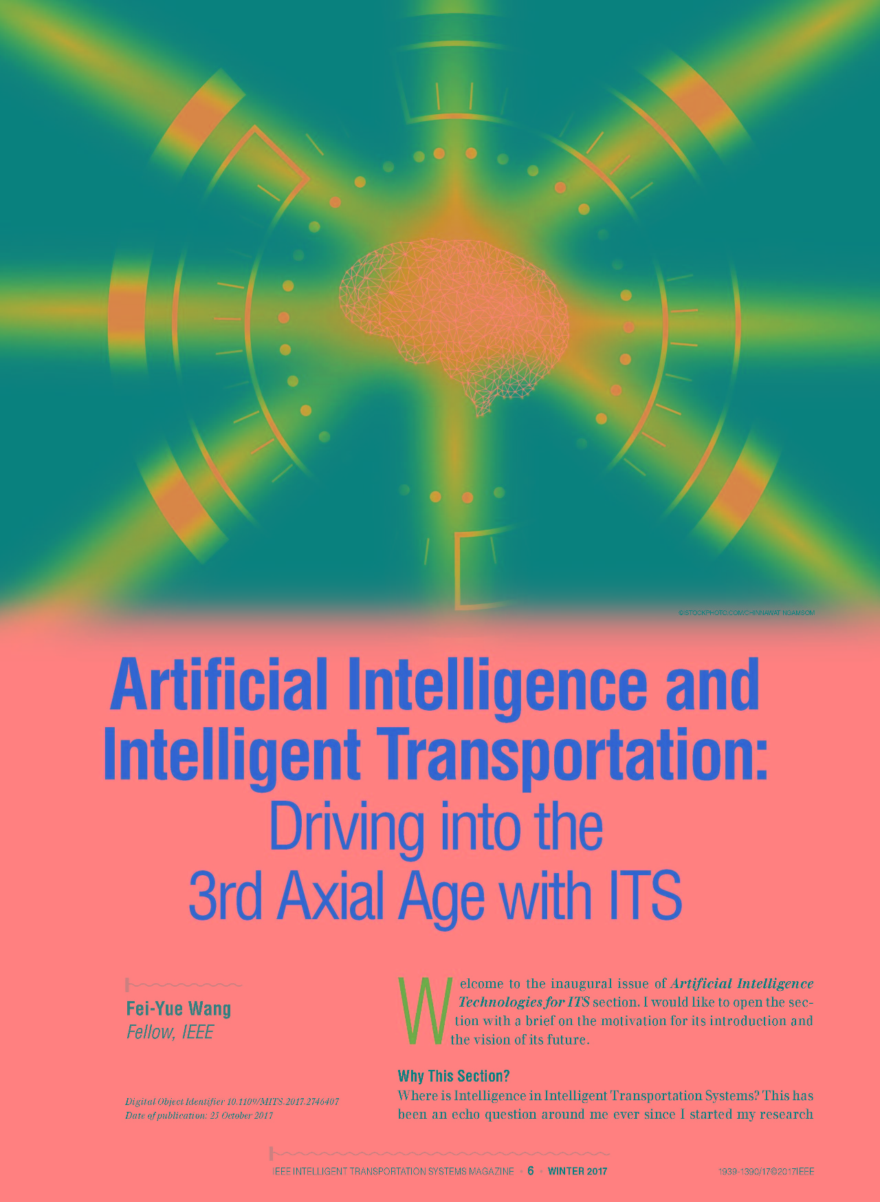 【引文格式】Fei-Yue Wang, Artificial Intelligence and Intelligent Transportation -Driving into the 3rd Axial Age with ITS, IEEE Intelligent Transportation Systems Magazine, Winter 2017, 6-9.
