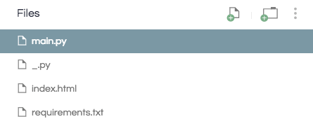此外,还需要添加两个文件:一个是项目的空白 Python 文件,这是 repl.it 用于检测 repl 是处于评估模式还是项目模式的关键。这里只需使用新文件按钮添加空白的 Python 脚本即可。随后,还需要创建一个将承载渲染 UI 的 index.html 文件。在此不需要深入了解这部分的内容,只需将此 index.html 上传到 repl.it 项目即可。