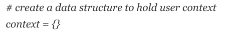 我们的上下文状态是一个字典数据结构,它将包含每个用户的状态。我们将为每个用户使用一些唯一的标识(例如,元胞数)。这使得我们的框架和状态机可以同时维护多个用户的状态。