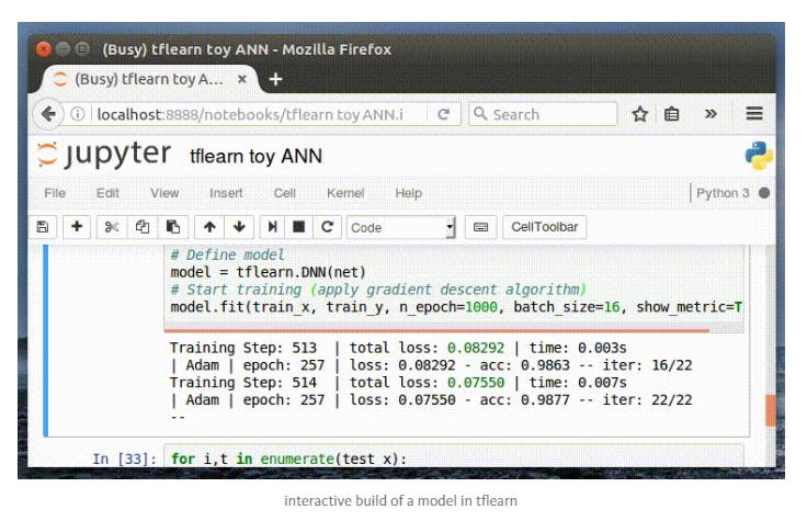 我们将使用tflearn,一个基于tensorflow的Python包。 一般用iPython notbook作为辅助工具