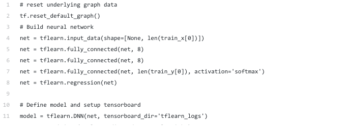 接下来,我们将加载保存的Tensorflow(tflearn框架)模型。需要注意的是,首先需要定义Tensorflow模型需要的数据结构,就像上一节所述。