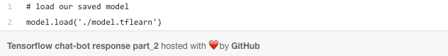 第二步的完整notebook脚本看这里(https://github.com/ugik/notebooks/blob/master/Tensorflow%20chat-bot%20response.ipynb)。