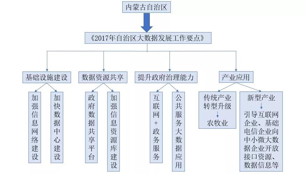 2015年是大数据政策顶层设计年,2016年是大数据政策细化落地年,2017年则是大数据产业蓬勃发展年。在政策红利及众多外部利好因素的推动下,我国已积累了一定大数据管理经验,今年来也逐渐探索出具有地方特色的大数据发展运维管理机制。贵州、辽宁、重庆、辽宁、内蒙古等省市相机出台政策举措,包括管理机制、运营模式以及建设内容等各方面,以促进当地大数据产业的发展。