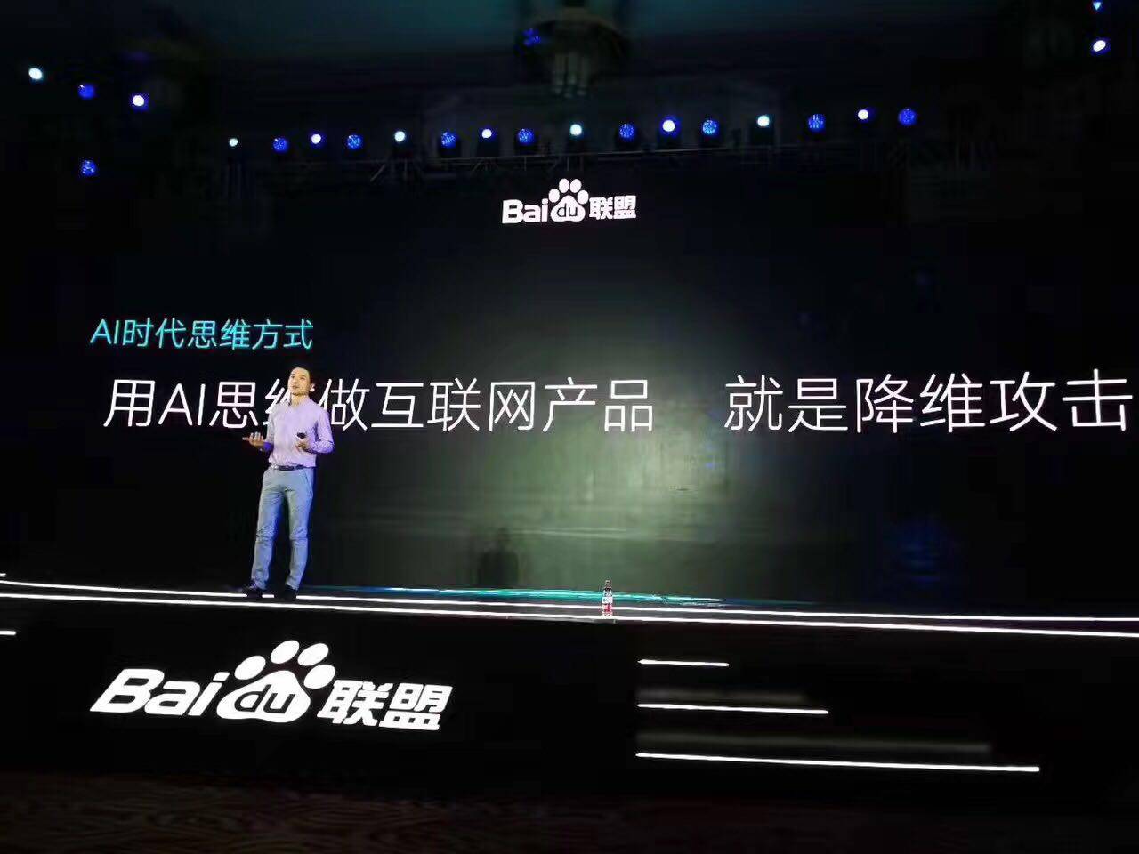在一个每个人都有手机的时代,大家每天都在和手机打交道,如果我们将AI思维与互联网结合,那么就实现了降维攻击——将文字搜索变为语音搜索——现在我们在手机上做的事情,重新用AI的方式去做,这就是降维攻击。