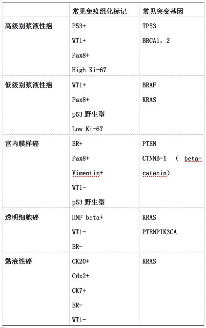 表2 卵巢上皮癌各亚型常见免疫组化标记和突变基因