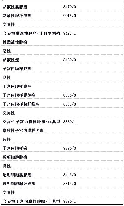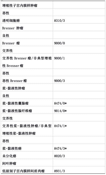 表1 卵巢上皮癌/生殖细胞肿瘤的组织学类型