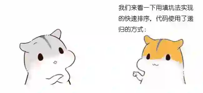 代码中,quickSort方法通过递归的方式,实现了分而治之的思想。
