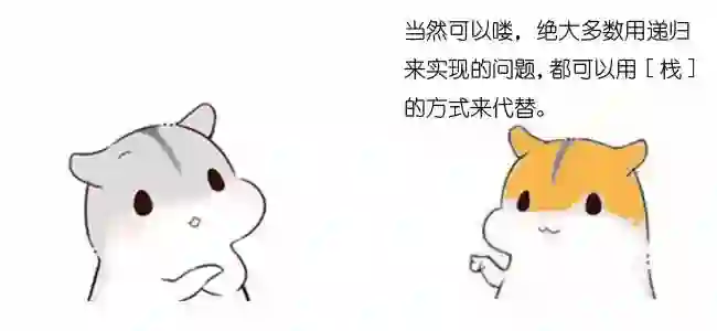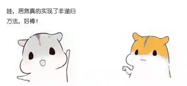 所以,我们可以把原本的递归实现转化成一个栈的实现,在栈当中存储每一次方法调用的参数: