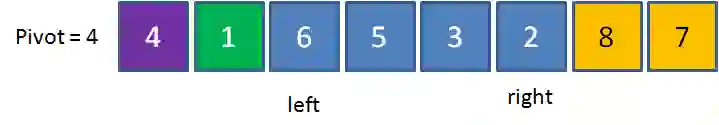 此时,right右边橙色的区域代表着大于基准元素的区域。