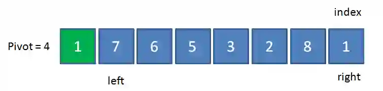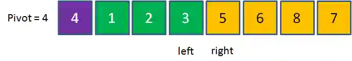 此时,left左边绿色的区域代表着小于基准元素的区域。