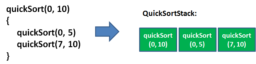 // 根据基准元素分成两部分, 把每一部分的起止下标入栈