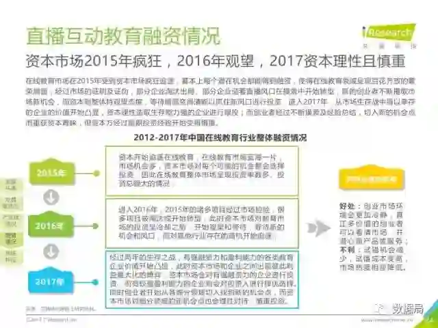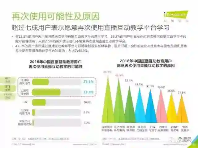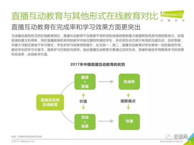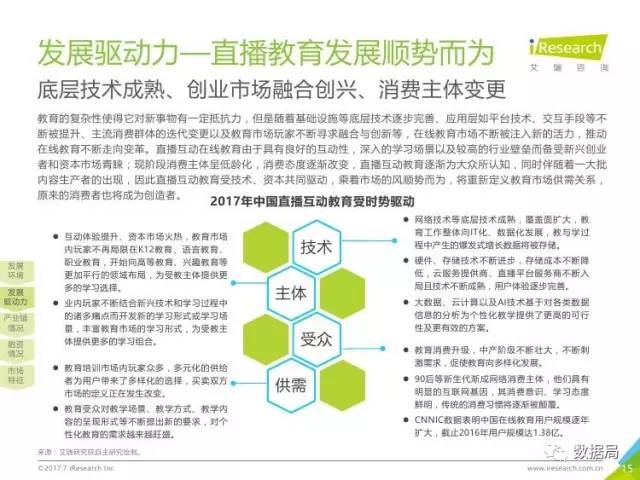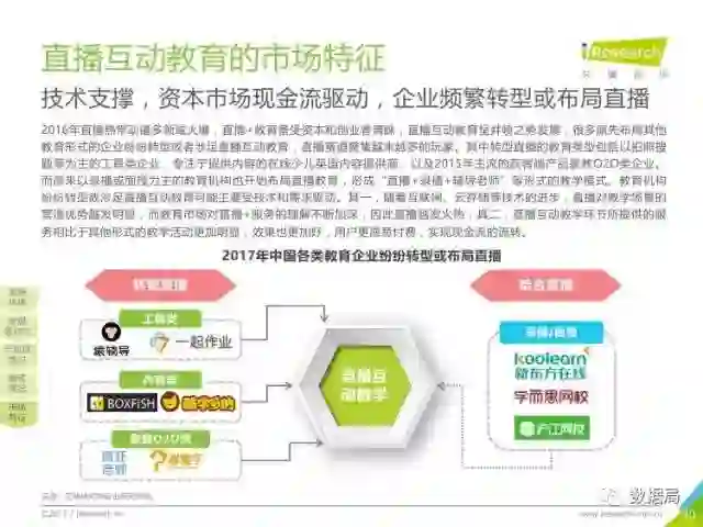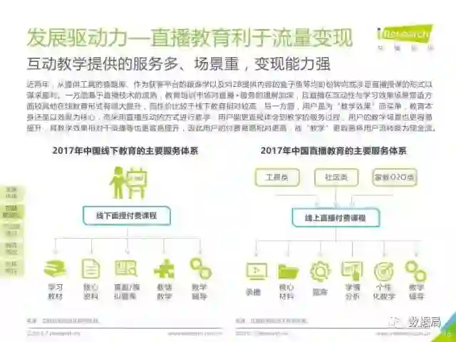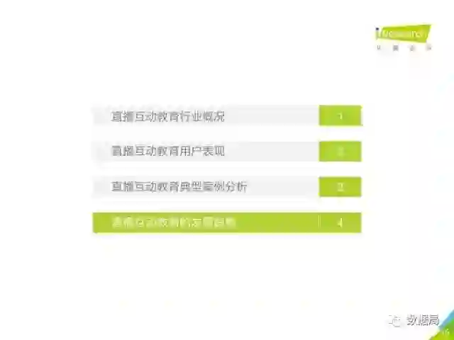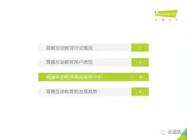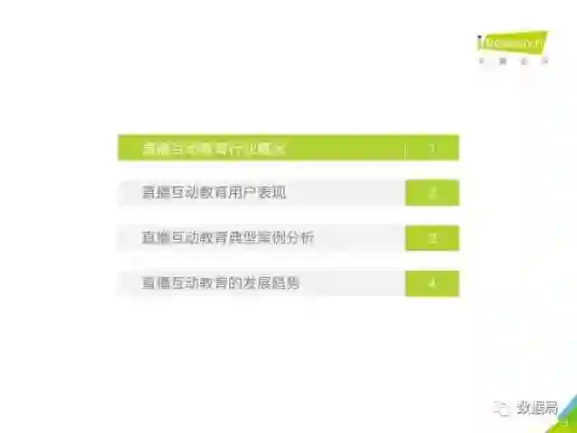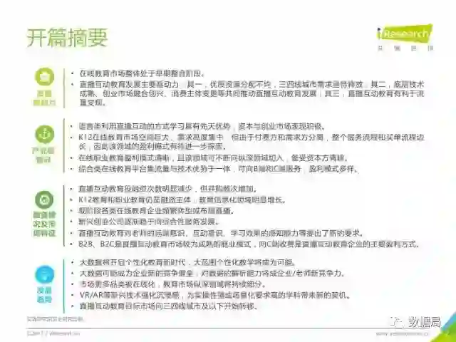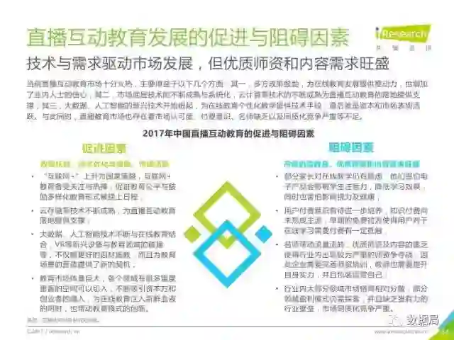《报告》主要是针对直播互动教育行业的发展背景、发展驱动力、行业特征及投融资等方面进行阐述,并结合适量的用户研究探讨用户对直播互动教育的态度及其使用过程中的问题,旨在让业内企业了解直播互动教育的发展现状、行业发展机会点以及未来的发展趋势。