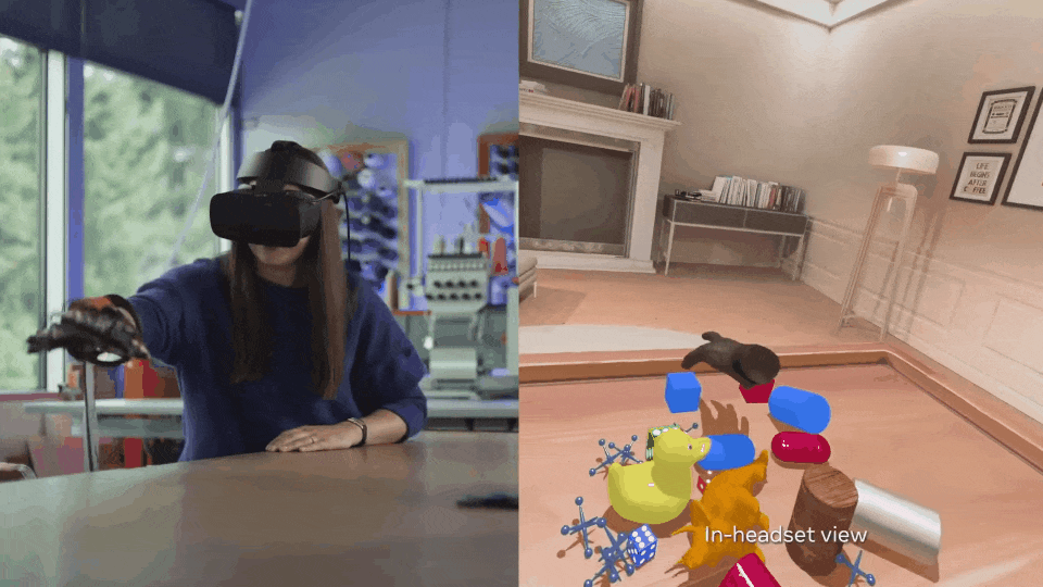 在2017年底的一项实验中,Meta RL使用指尖上的单一振动触觉设备,在VR中的一系列不同材料制成的虚拟球体(木头、大理石、泡沫)从空中落下时提供触觉反馈。