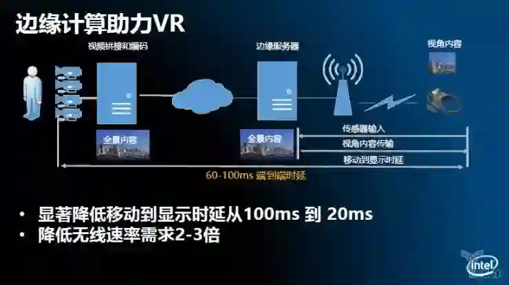 摘要:英特尔中国研究院通过重点研究通信和计算融合的方式,解释了5G在面对巨大数据洪流时数据处理和传输的方式,通过边缘计算的新方法,使VR达到传输要求。打造一个高效的通信和计算系统,通往我们设想的远程沉浸式互动的未来。
