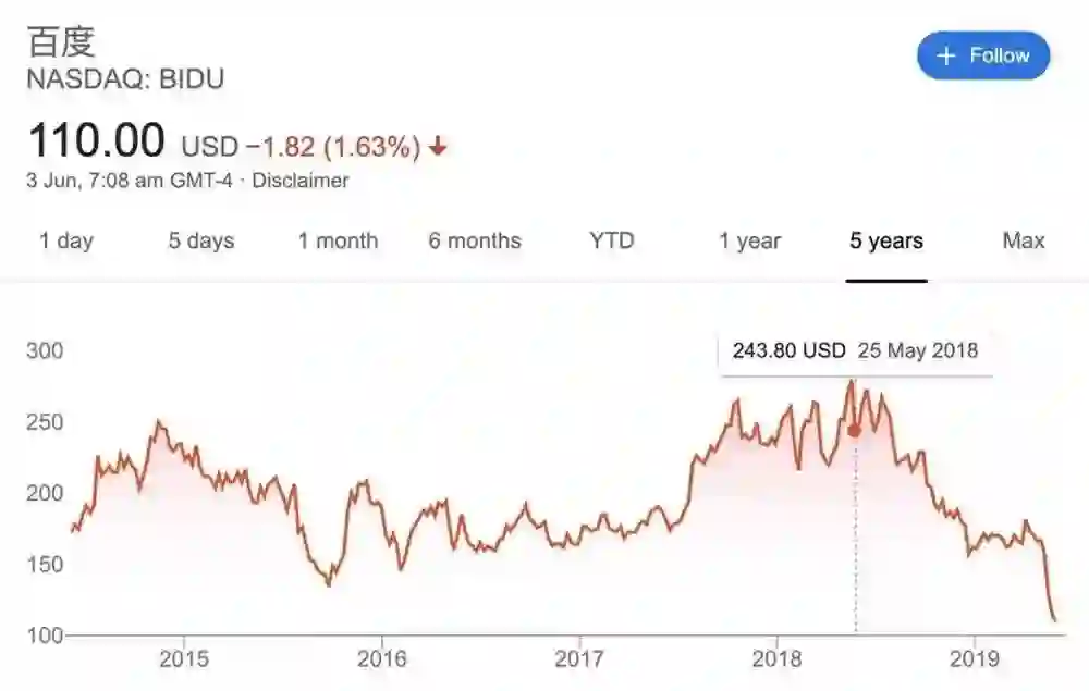 奋斗了400多天后,陆奇将一个业务体系焕然一新,业务目标高度聚焦的百度交还给了“偶像创始人”李彦宏和“知心姐姐”马东敏夫妇,百度的股价则在当日开盘暴跌10%。