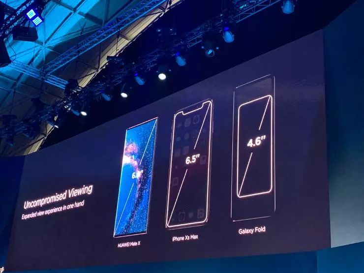 Mate X与iPhone XS Max和三星Galaxy Fold的对比
