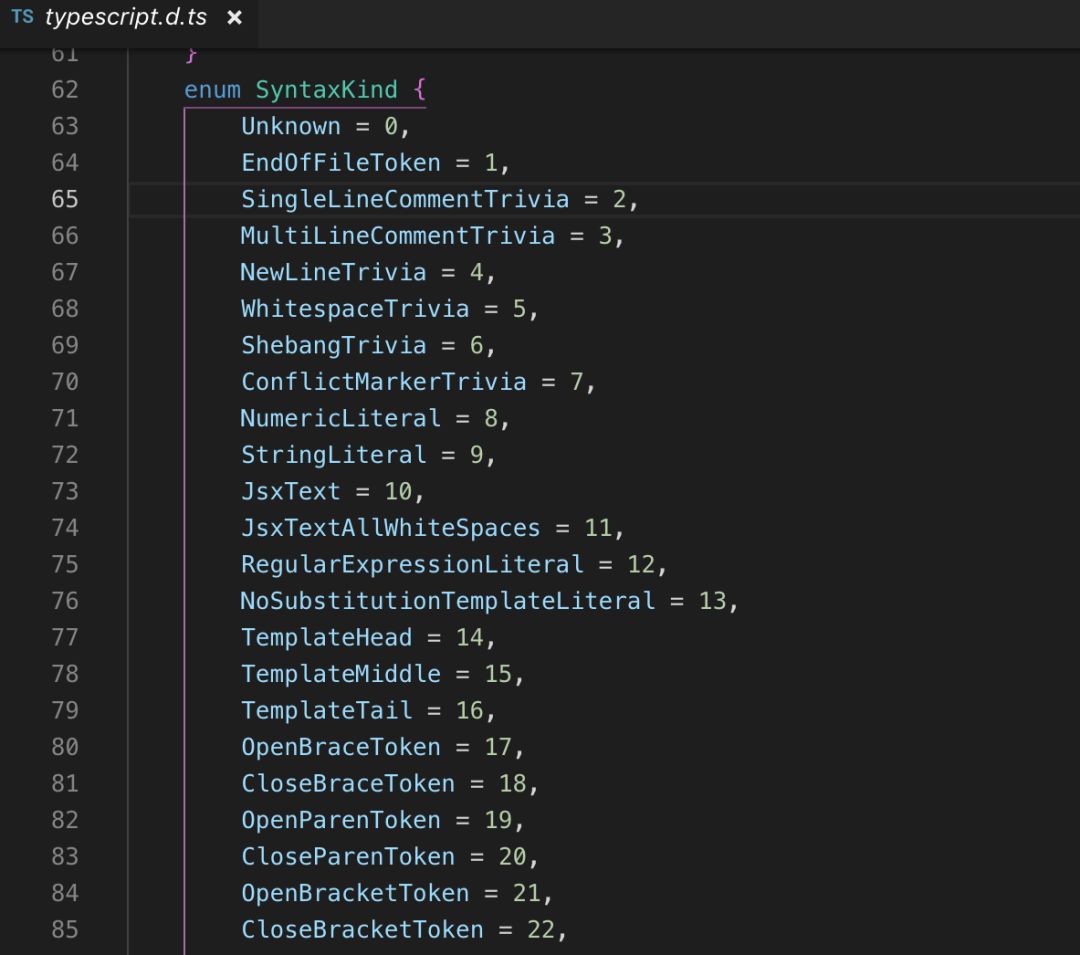 通过ts.forEachChild方法对于语法树所有的节点进行遍历,在遍历的方法里可以实现自己的逻辑,其中节点的类为ts.Node: