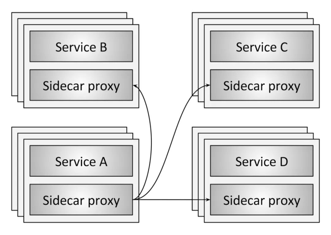 当该 sidecar 在微服务中大量部署时,这些 sidecar 节点自然就形成了一个网格: