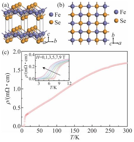 FeSe是一个非常简单的二元化合物,早在 1978年就已合成并开展了其相图的相关研究。FeSe具有多种相,如α、β、γ、δ等,其中β相具有典型的PbO型结构,即FeSe4正四面体共边结构组成 Fe-Se 层状结构堆叠而成,和LaFeAsO中的FeAs层非常类似。正是如此,台湾吴茂昆小组在铁基超导发现之后就注意到这个材料。和当年吴茂昆等人发现 YBa2Cu3O7-x 超导电性的思路类似,如果认为铁砷化物超导主要来自于层状结构中的 Fe-As 四面体层,那么具有类似简单 Fe-Se 层的FeSe材料也可能是超导体。果不其然,吴茂昆小组很快在 2008年 7月就发现了 FeSe材料具有 8 K 左右的超导电性(图 2)。同月下旬,日本国立材料科学研究所 Takano研究小组也成功合成了 FeSe多晶块材,并发现在高压下其 Tc能达到 27 K,说明这个材料的临界温度有极大的提升空间。T. M. McQueen 和 C. Felser等人随后在更高压力下获得了临界温度为36.7 K的FeSe。