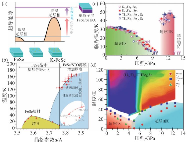 图4 铁硒超导体成分结构、化学掺杂与外部压力相图
