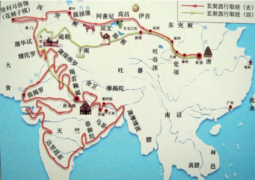 图1 大唐玄奘西行路线图(来自www.cc362.com)