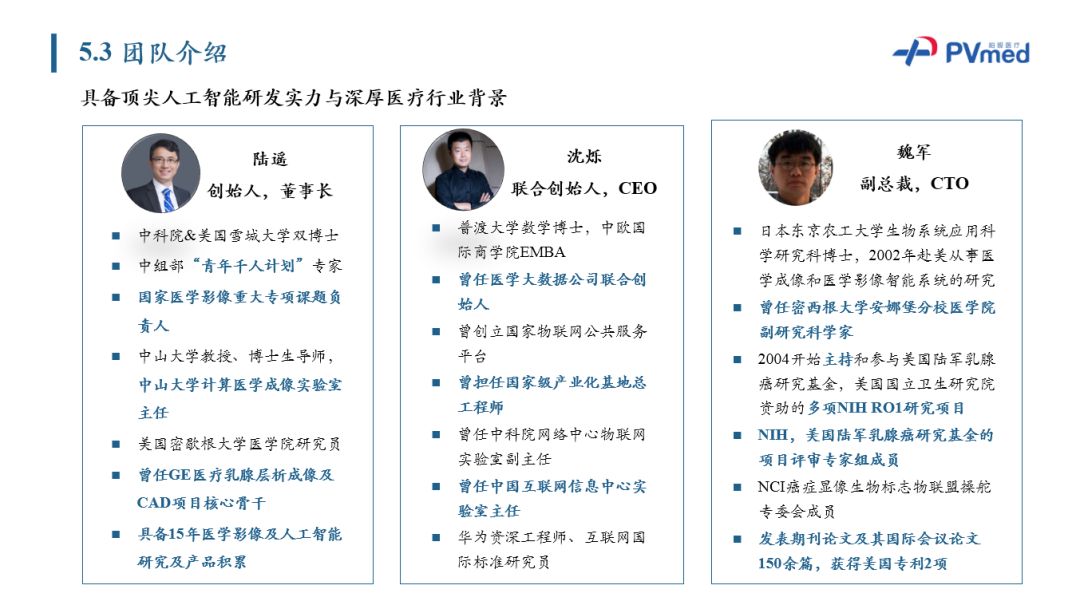 除鼻咽癌放疗靶区勾画之外,柏视已拥有多病种多模态的产品形态,为放射科、病理科、放疗科提供价值。公司具有顶级计算机辅助人工智能团队,具有多年顶级的人工智能的技术积累和丰富的医疗资源。本人也在医学院工作多年,一直从事医疗人工智能研究,所以在行业内有多年的积累。团队研发占据80%,大部分具有海归经历,因此是一个典型的技术型公司。