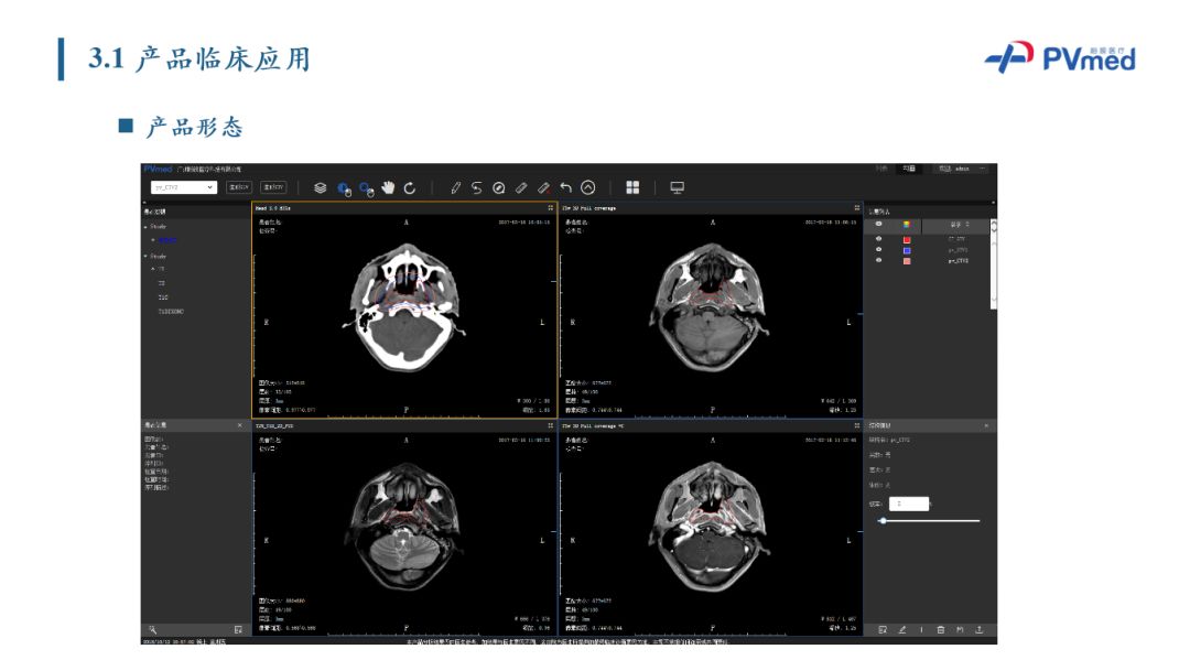 面向GTV勾画、CTV预测和OAR分割功能,柏视在发展云平台提供产品化的服务,并在合作的医疗机构中进行临床试用。接下来介绍柏视产品临床应用情况。