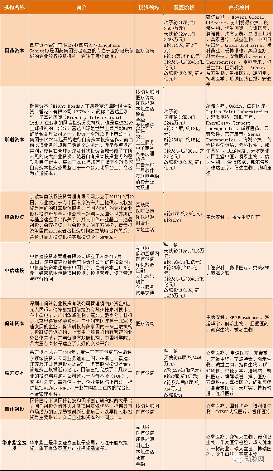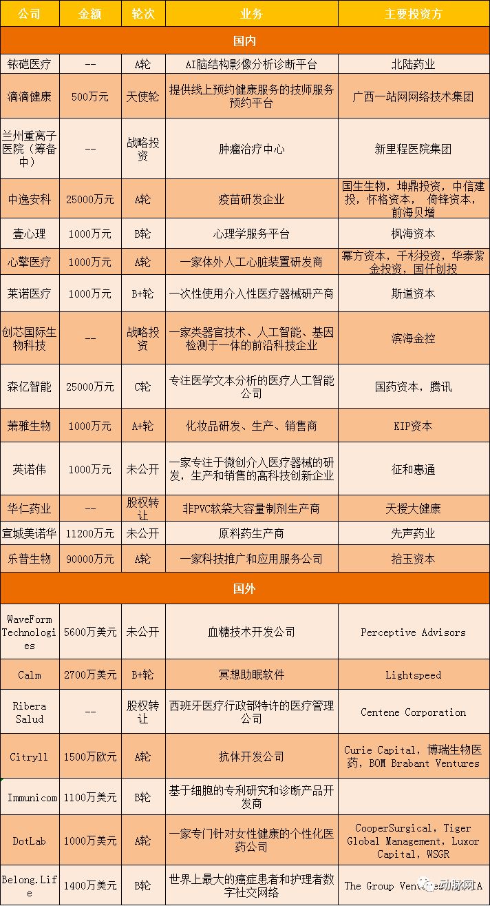 涉及健康管理、医学影像、人工智能、医疗器械、生物医药、医疗媒体等领域。