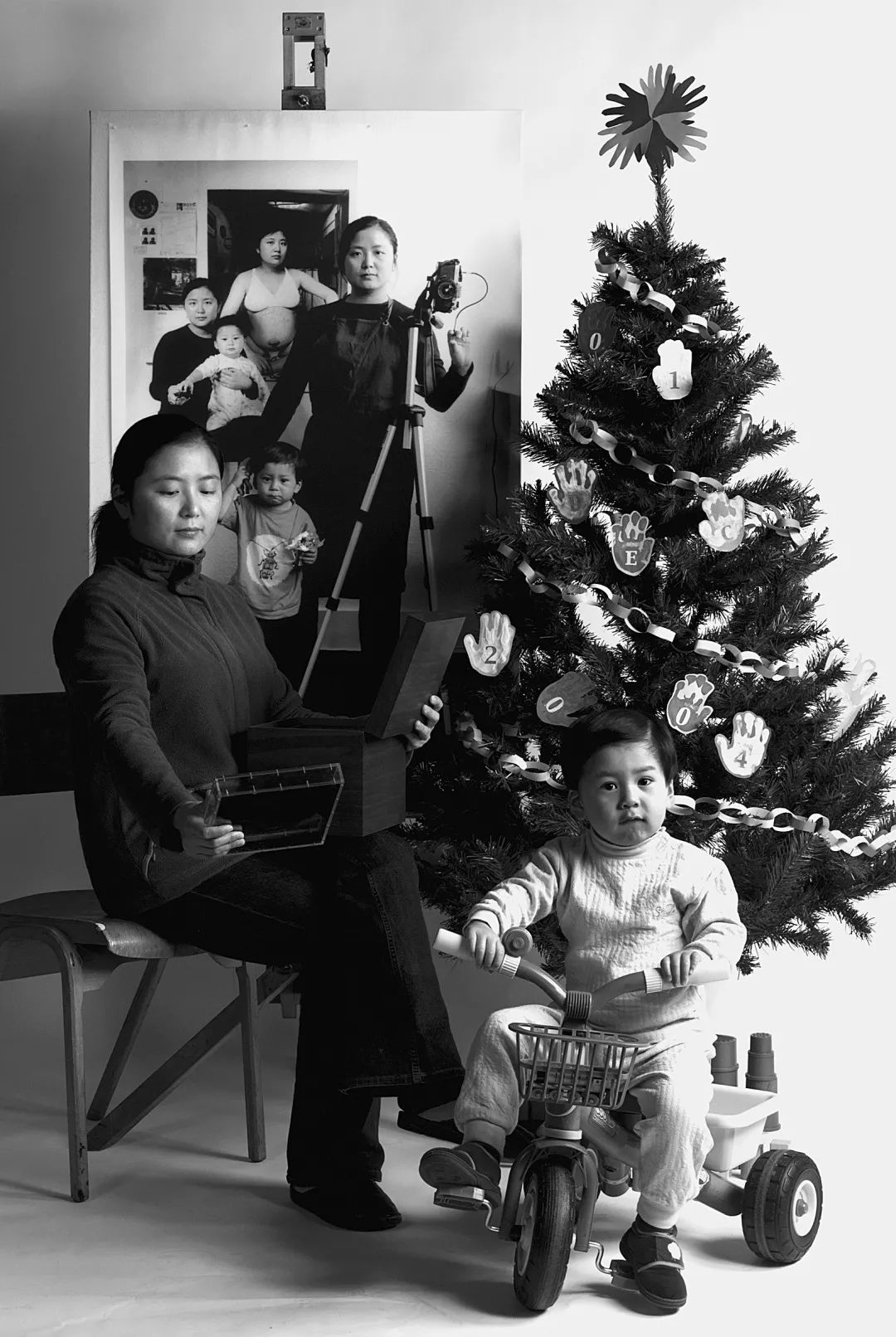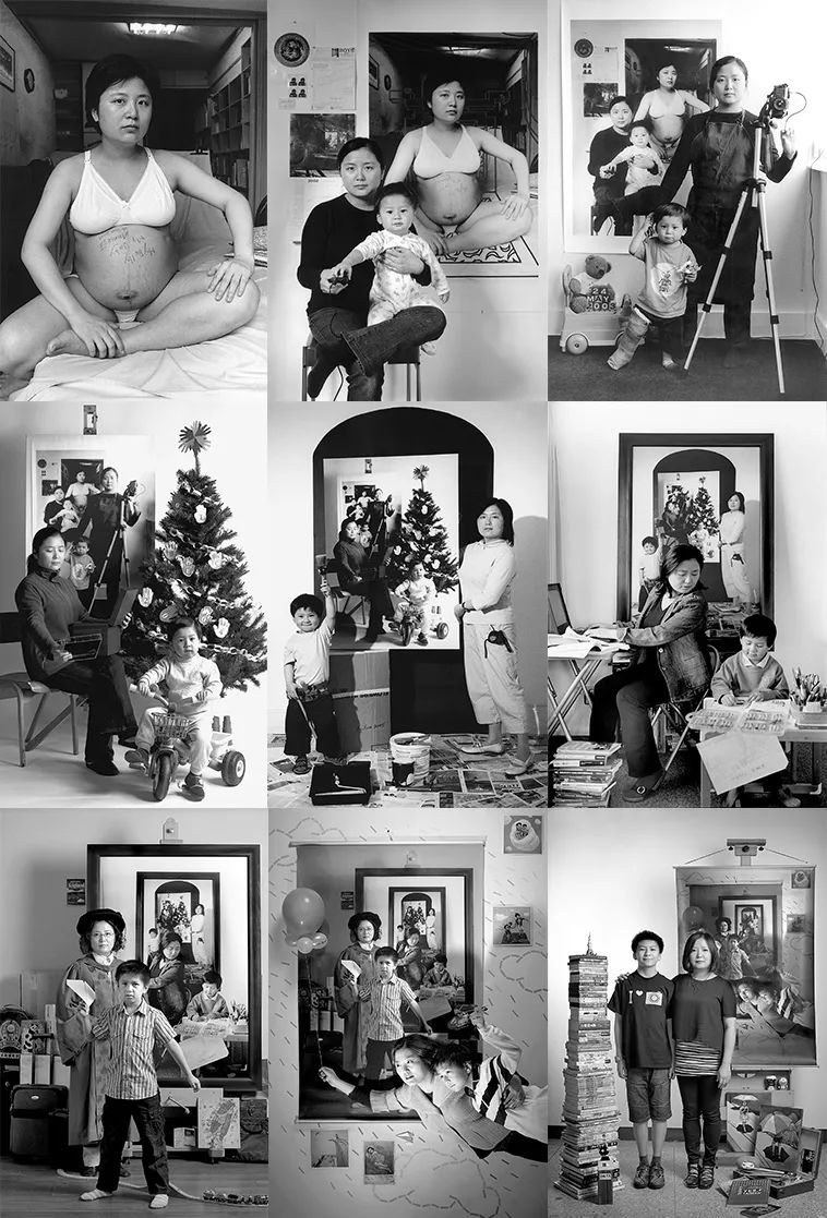 这样讲了几次后,我突然觉得有了一种对话的感觉——在那张照片里,我看到了自己的过去,我很疲惫、我很生气,而现在,状况已经很不同了,我在用自己的方式去做妈妈,是带着一点开心的。所以,我就决定在这张图前面再拍一张照片,就像一个时光隧道,如果每年都拍一张的话会形成什么样子?就好像这个妈妈一直在“生”东西,生下了这个生命,生下了这个作品,生下了她的生活。
