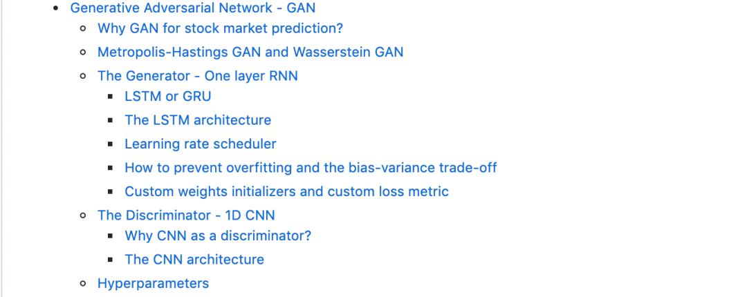 这篇教程的篇幅很长,为了让大家能对重要技术内容一目了然,作者在开始加入了层级清晰的目录,主要从【背景】、【数据特征】、【GAN 模型架构】、【超参数优化】等几大方面进行全面讲解。
