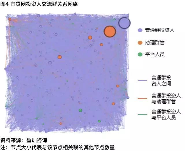 我们以宜贷网官方交流群三群2017/11/7~2017/12/5的44652条聊天记录为观察样本,分析了平台人员、助理群管、投资人之间的关系。