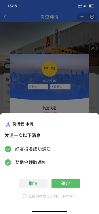 比如某企业客户系统里沉睡用户(求职者)有70万,在招聘求职高峰期来临前两周,客户在系统里主动发起激活通知,以短信和微信服务通知消息模板的两种组合形式,给沉睡用户发送“职位邀请”消息,达到激活的目的。