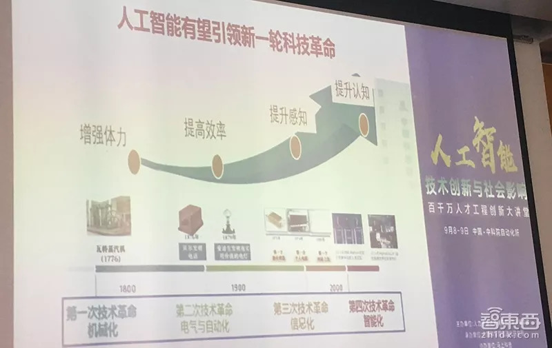 智东西9月8日报道,今明两天,“AI:技术创新与社会影响”百千万人才工程大讲堂在北京举行,由人力资源社会保障部、中科院自动化研究所共同主办,从技术前沿到产业热点、从人类伦理到社会变革,共论AI。