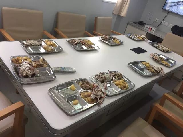 我们走到最头上的房间。好像正好是开饭时间!好香啊~