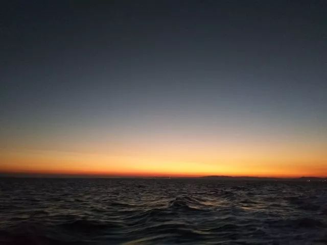 傍晚无事,在甲板上静静的看着日落;晚上工作的时候,如果天气好,抬头可以看见比城市多几倍的繁星;并伴随着壮丽的日出收工,新的一天由此开始。