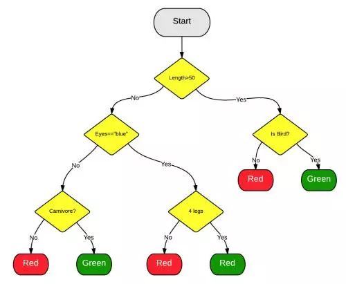 基本上它是一个分类器,表示为基于自变量的递归分区。决策树具有形成有根树的节点。生根树是一个带有名为“root”的节点的有向树。Root没有任何传入边缘,所有其他节点都有一个传入边缘。这些节点称为叶子或决策节点。例如,考虑以下决策树以查看某人是否合适。