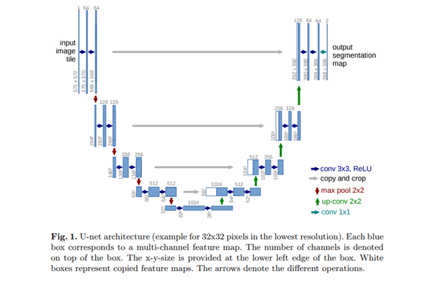 你可以在这里找到U-Net的完整实现:https://lmb.informatik.uni-freiburg.de/people/ronneber/u-net/。