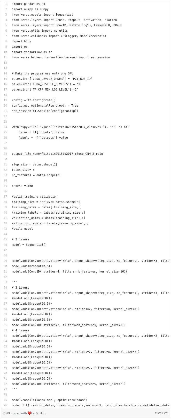 上述代码是我建立的第一个卷积神经网络模型。 以下代码将我的GPU编号为“1”(这是因为我有4个GPU,您可以将其设置为您任何一个GPU)。 由于Tensorflow在多GPU上运行似乎不尽人意,因此把它限制在一个GPU上运行很合适的。 如果您没有GPU也请不要担心,尽管忽略下面的代码就好。