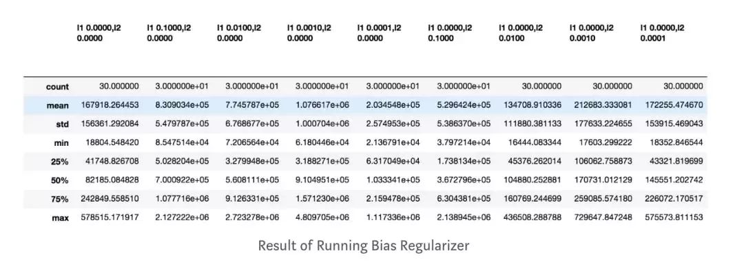 通过比较可知,L2正则化中偏差向量的系数为0.01时可以似乎得到了较好的结果。