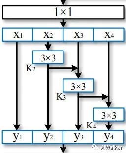 再再再比如南开大学提出的Res2Net,其实也是一种多尺度卷积,结构如下: