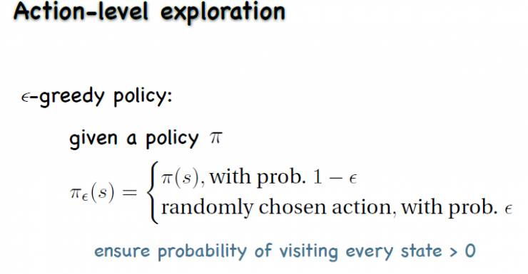 该方法可以保证所有状态都有一定的概率,哪怕是很小的概率,被访问到。所以当运行一段时间以后,它能够找到最优的策略。