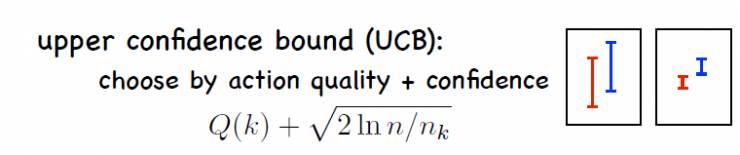 所以,按照Q值加上置信度的上界来选择动作,它就会自动平衡。