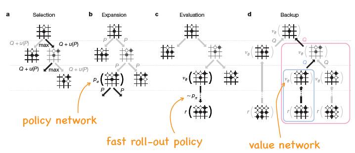 AlphaGo系统的基础框架是蒙特卡洛树搜索,这是经典的树搜索的方法。但是单凭蒙特卡洛树搜索本身并不能取得很好的效果,只用树搜索大概只能达到业余的五六段。AlphaGo里面的一个创新的点就是引入强化学习来改进搜索树的深度和宽度。