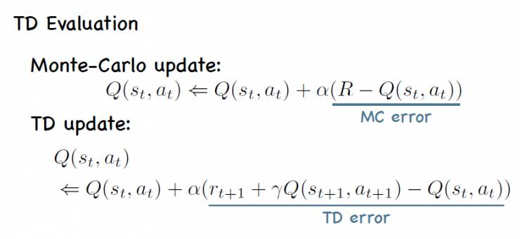 如果用蒙特卡罗的话,需要先走到底,知道总体的结果之后,每一步的差别就能算出来;而对于TDL来说,只需要记录一步的信息,所以可以在线更新自己。
