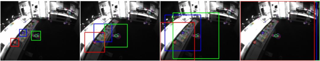 为了实现尺度不变性,我们通过常数乘数将景况与特征尺度耦合。在图中,乘数分别为20,50,100,300。注意,从乘数100开始,边界效应开始显着,而对于20,背景仅捕获少数其他感兴趣点。 表I中的结果报告乘数50在性能方面是最好的,正如我们对定性分析所期望的那样。