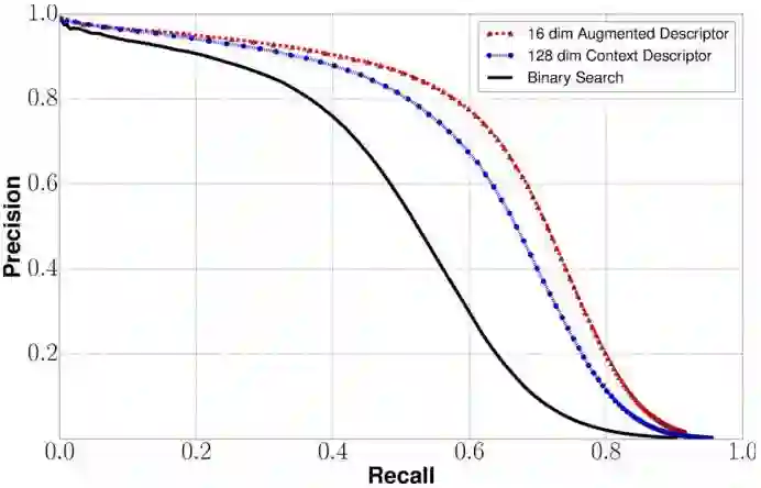 在本文中,我们基于神经网络的最新进展,提出了一种压缩描述符的新方法,同时提高了它们的可辨性和可匹配性。 同时,我们在设计选择中针对资源受限的机器人应用。 这项工作的主要贡献是双重的。 首先,我们提出了一种从描述符空间到低维欧氏空间的线性投影,它基于一种采用三重态损失的新型监督学习策略。 其次,我们展示了将上下文外观信息包含在视觉特征中的重要性,以便在强视点,光照和场景变化下改善匹配。通过对三个具有挑战性的数据集的详细实验,我们证明了相对于最先进方法,性能有显着提高。
