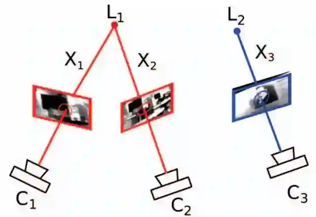 三联体的前两个组成部分X1和X2是匹配的,这意味着他们观察到相同的特征。 另一方面,X3不匹配,因为它描述了不同的兴趣点。