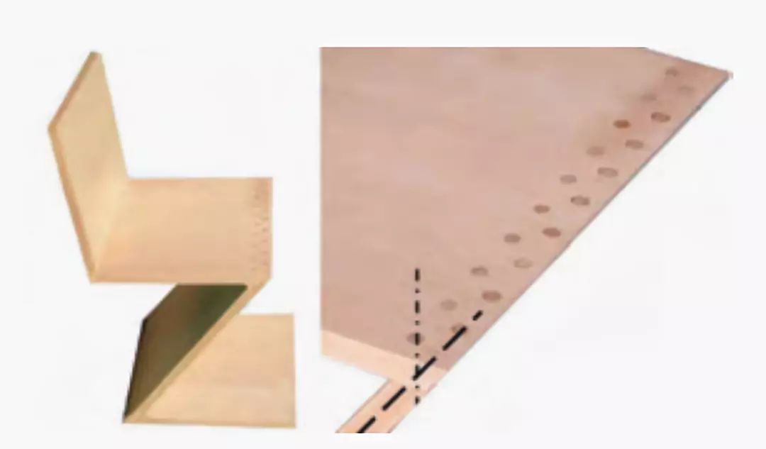 如著名荷兰建筑设计大师赫里特·里特费尔德设计的极简抽象派Z字型椅,用四块榉木板以间距为32mm圆棒榫,不添加任何物质、仅通过圆棒榫旋转焊接组装。